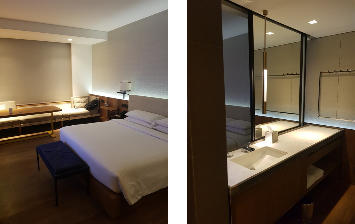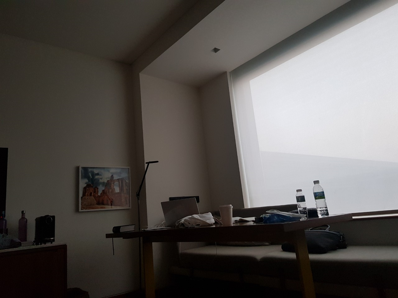 저희는 킹룸이라는 곳에 머물렀어요. 일반 호텔 디럭스룸에 놓을만한 크기의 침대가 있었고 방이 생각보다 컸어요. 또 책상 겸 누울 수 있는 소파도 있어서 출장 중에 소파와 침대에서 번갈아가며 잘 쉬었습니다.ㅎㅎ 세면대와 화장실, 샤워공간이 분리되어 있어요. 세면대 뒤에 샤워공간이 있습니다. 일반 호텔의 샤워공간보다 2배 정도 되는 크기였어요.
