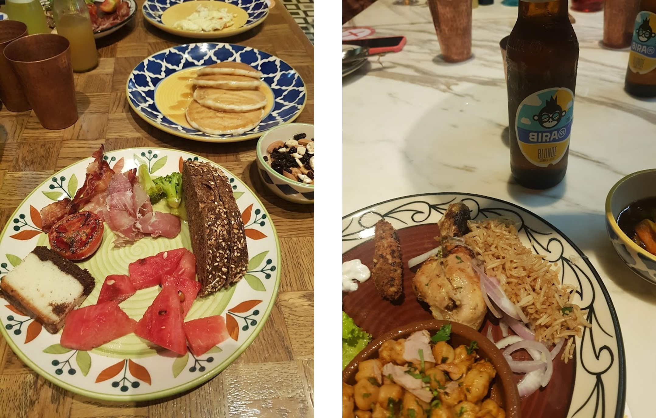 저는 조식으로 요거트를 좋아해서 아침마다 자주 먹었어요. 중동지방에서 주로 드시는 "후무스"도 매일매일 준비가 되었어요. 빵 종류가 상당히 많고 달지 않아서 많이 먹었습니다, 과일도 좋았어요 ㅎㅎ. 오믈렛이나 스크램블 같은 계란 요리와 팬케이크를 주문할 수 있습니다. 출장기간 중에 핼러윈 기간도 포함되어 있었어요. 디저트를 핼러윈에 맞게 만들어주셔서 보는 즐거움도 있었어요.